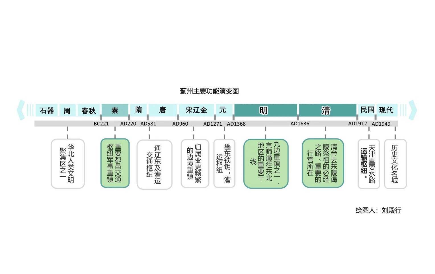 天津蓟州区古称,“无终”“渔阳”“蓟州”,处京津冀中心地带。