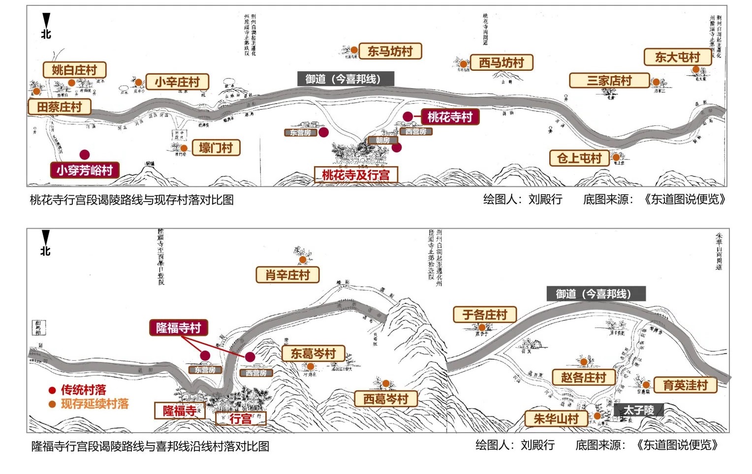 途径蓟州区,有固定的路线,名为御道,在御道途中,皇家还建造了临时休整用膳及视察民情的行宫,其中就包括蓟州区桃花寺行宫和隆福寺行宫。