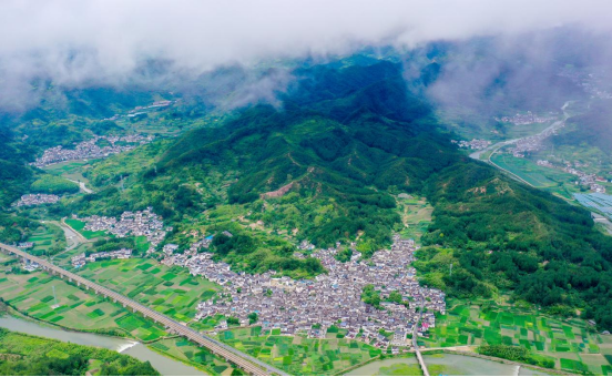 山环水绕的传统村落——周坑村鸟瞰