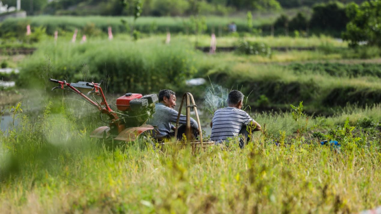 宅坦村田间劳作休憩的村民