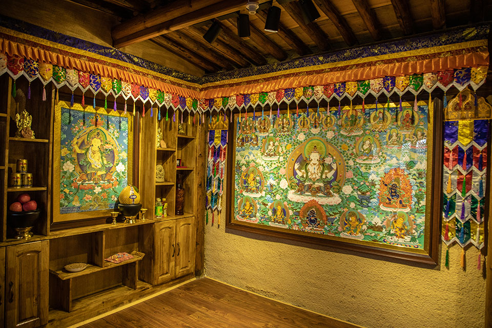吾屯下村:龙树画苑正厅中央的精美唐卡