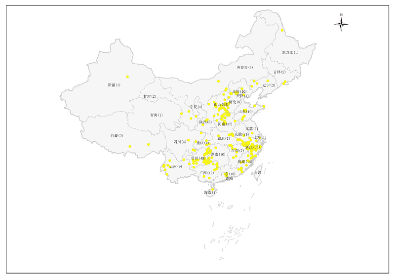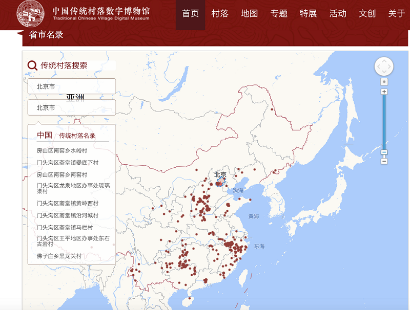 中国传统村落数字博物馆村落单馆全国分布图
