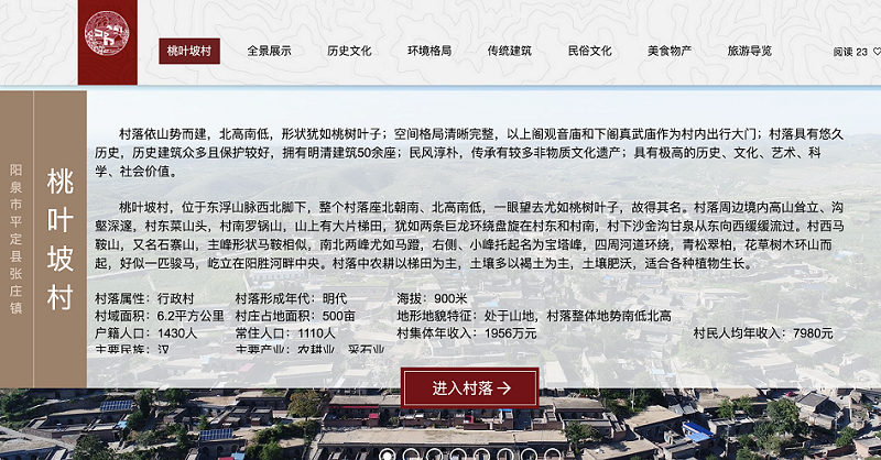 (图 山西省阳泉市平定县张庄镇桃叶坡村单馆首页)
