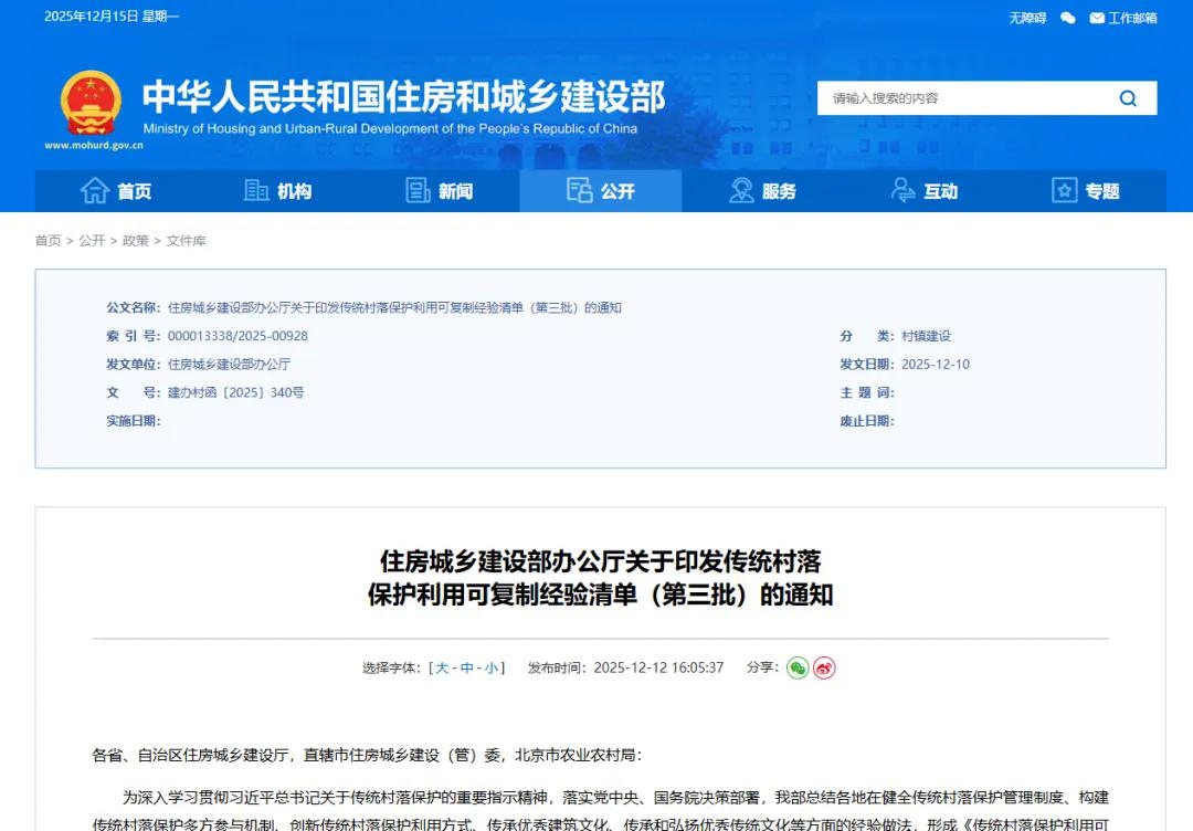 重要资讯 | 住房城乡建设部印发传统村落保护利用可复制经验清单(第三批)